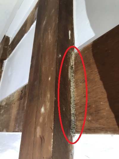 (裝潢角材被咬空了!小心結構安全性!)