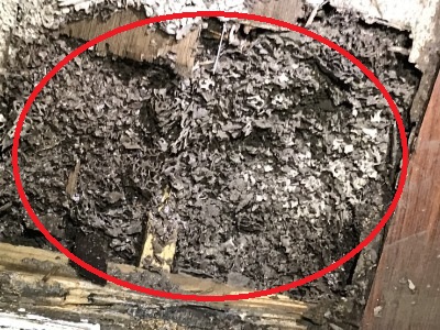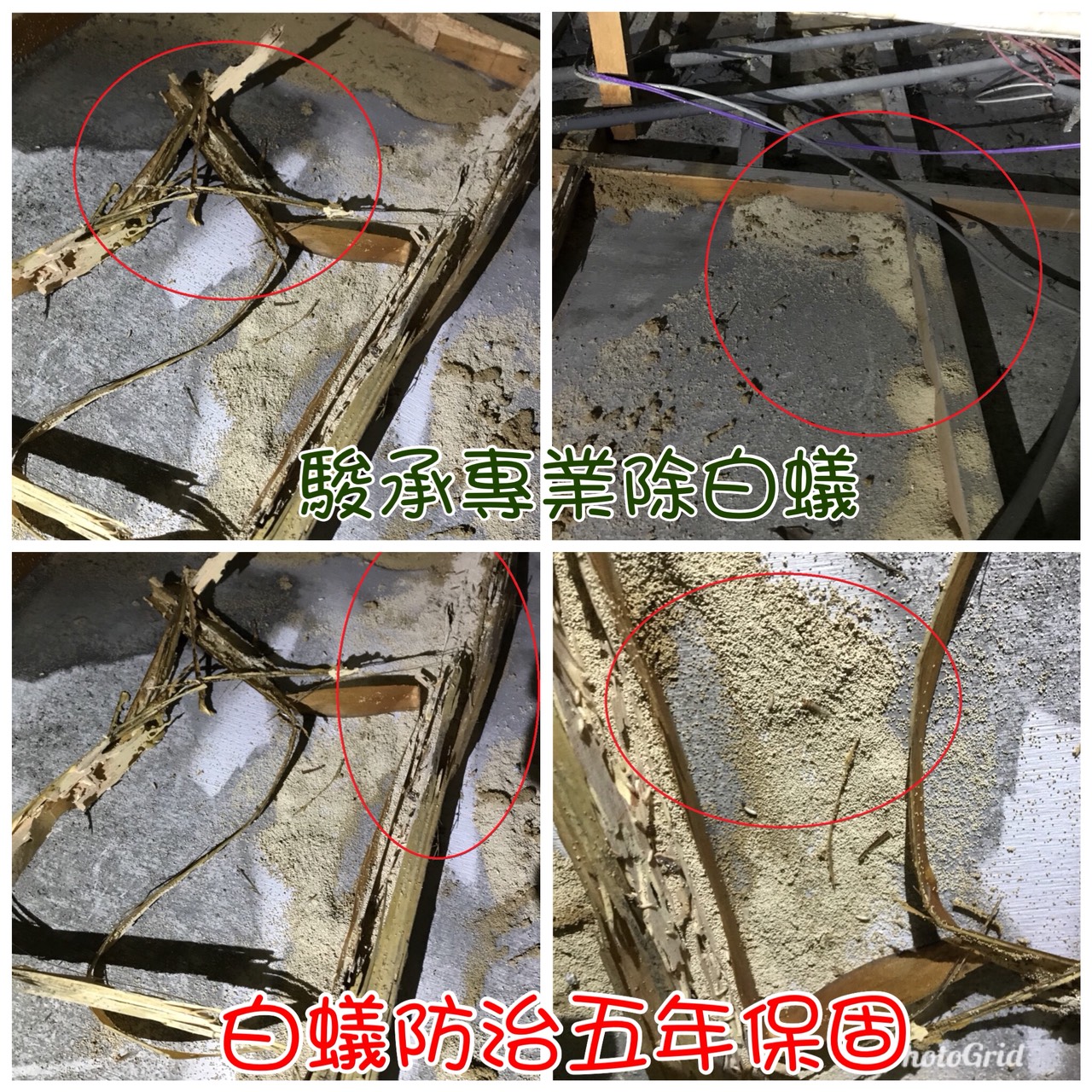 (環保建材本身夾帶的乾木白蟻,裝潢角料已全部遭壞破!)