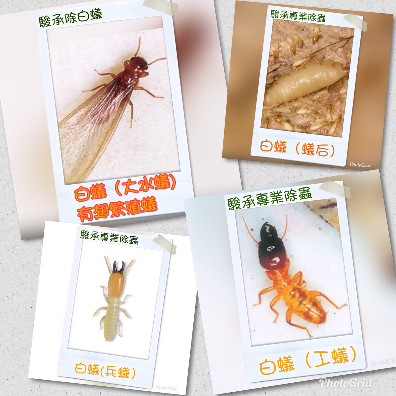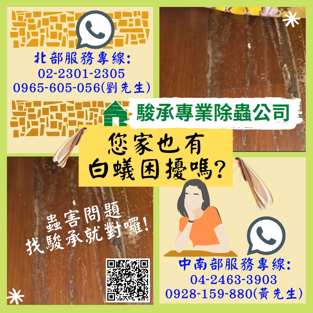 白蟻是節肢動物門,昆蟲綱,屬等翅目的昆蟲,是不完全變態的昆蟲,胸腹間寬闊,體質柔軟,觸角呈念珠狀。在白蟻的社會中,數目最多的是工蟻,主要任務是造巢,以口對口方式提供食物給蟻后、兵蟻以及照顧幼蟲。兵蟻有褐色、強壯的大顎,可以驅逐外來的敵人。白蟻組群之中有幼蟻、若蟻、工蟻、兵蟻、後備王族、蟻王和蟻后,除蟻王和蟻后在交尾時在巢外群飛外,牠們一生都生活在蟻巢內,除了特殊情況外都不會在光天化日下活動。白蟻巢多在樹幹內、地底下、以及建築物的木材內、在四處覓食時會沿著管線、水泥裂縫等之空間,來入侵家中的衣箱、木器、書櫃或木質裝潢等,若堆積著長年不移動,就會成為白蟻巢穴。負責建立新家的任務的雄白蟻和雌白蟻,自交尾前是無翅膀的,在夏季4~6月潮濕、悶熱的氣候下,常會大量從巢內飛出,在空中覓偶交配,交尾中或交尾後會落至地面,翅膀很快就掉落,掉落翅膀的雌雄白蟻覓地建立新的家庭,交尾後,白蟻后的腹部,逐漸增大,白蟻后可成至2~4公分,第一卵的幼白蟻由蟻后及蟻王哺育,幼蟻發育完成後即反哺育蟻后、蟻王,此後蟻后就專司生殖,生殖潛能大增,其生殖壽命可達10~30年。