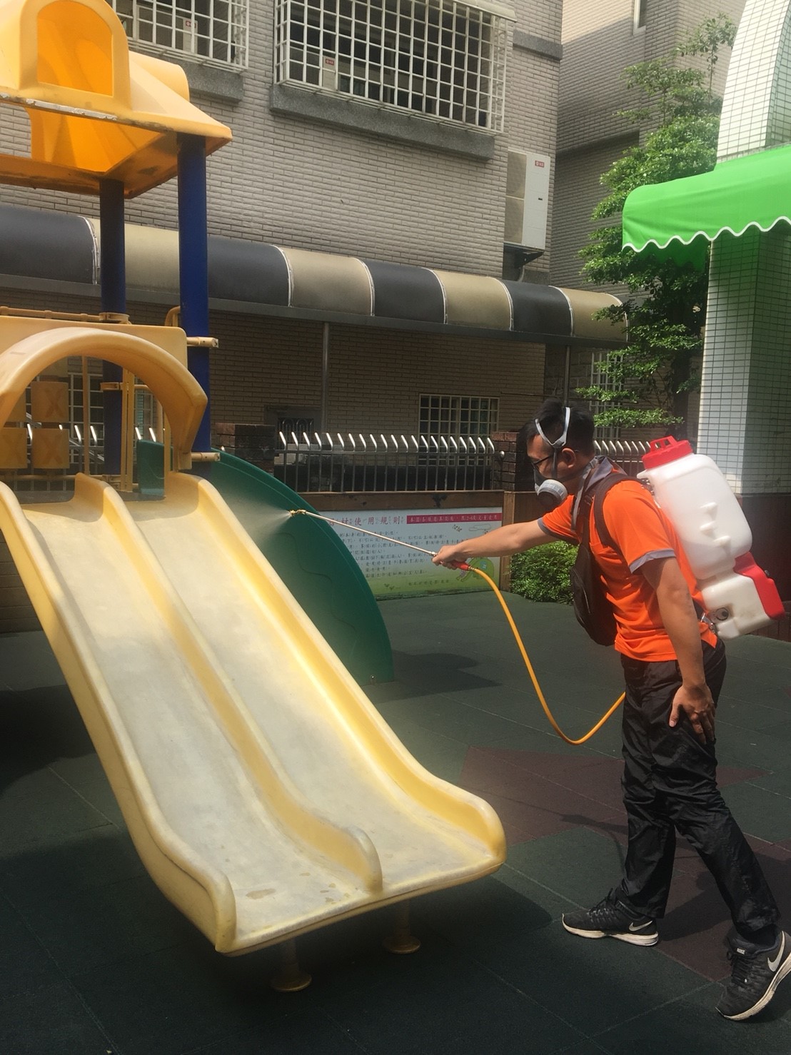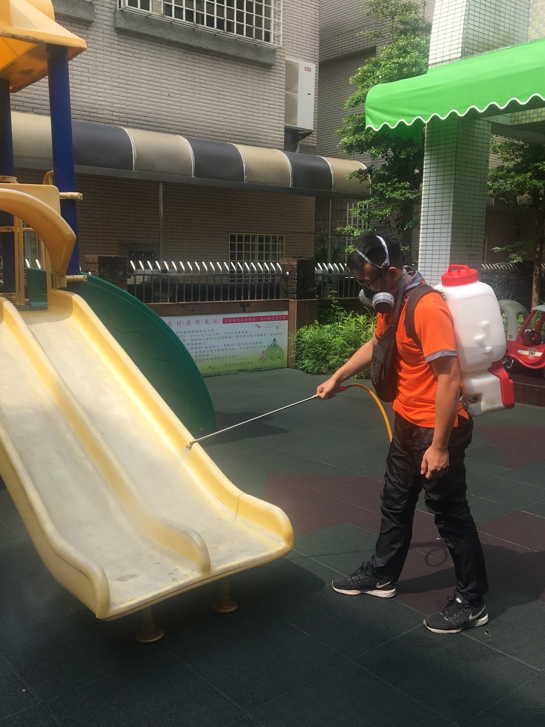 (定期消毒遊樂器材減少無形中的細菌及病毒)